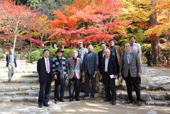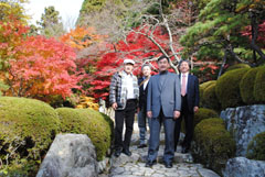 中田社長にご案内いただき、木から木へ飛び移る北山杉の枝打ち作業を見学しました。ご自宅へおじゃまし天然出絞床柱を見せていただきました。中田家菩提寺の宗蓮寺を訪問し、お茶をいただきながら北山杉の山と紅葉を鑑賞しました。「北山杉」の人気復活と需要増を図るべく努力している中田社長の取り組みに感動しました。 |