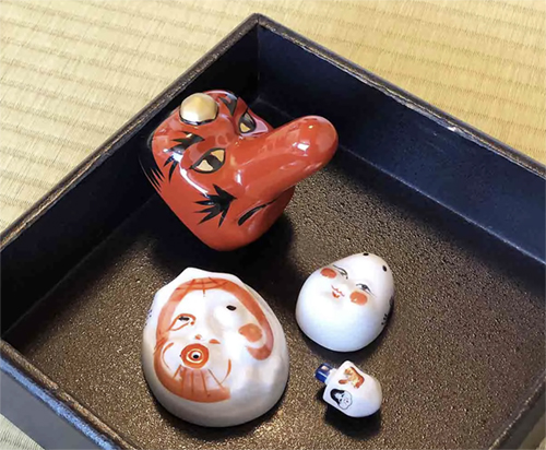 そう歌いながら、こまが倒れるのを待ち、止まった方角にいる人が駒に描かれた盃で飲むというとてもシンプルなお遊びです。とても楽しいひと時を過ごし夜は更けていきました。お土産としても盃は販売されており、なぜか翌日の夕食時もその盃と歌声が響いておりました。