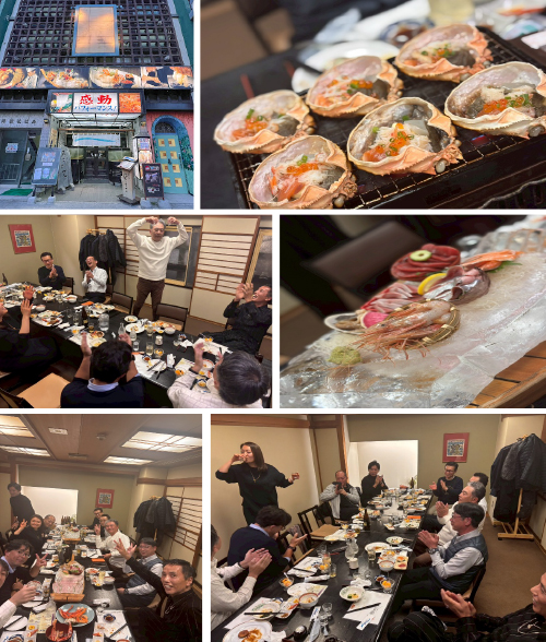 初日の懇親会は、「海鮮屋:はこだて」にて、オリオン機械の村石副本部長様と富山工場長様にもご参加いただき、北海道のおいしい魚介類に舌鼓!